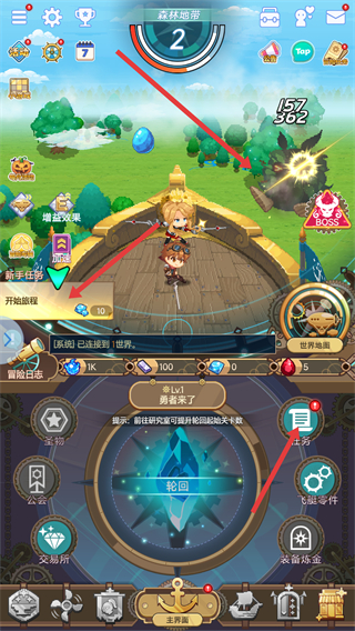 1、主界面可看到開始旅程按鈕,點擊后開啟冒險,同時可查看任務(wù)、兌換等功能入口,推進(jìn)游戲進(jìn)程。