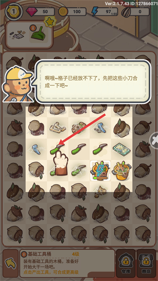 4、將相同的小刀合成,合成后獲得更高級(jí)的物品,合理利用倉(cāng)庫(kù)空間,提升物品管理效率。