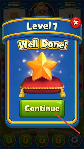 4、成功完成第一關(guān)后,會(huì)顯示W(wǎng)ell Done,點(diǎn)擊Continue,繼續(xù)挑戰(zhàn)下一個(gè)關(guān)卡。