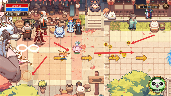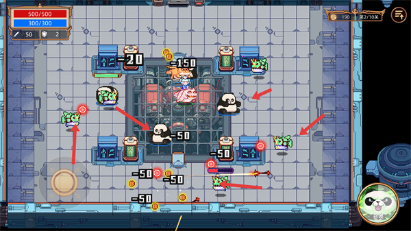 3、點(diǎn)擊右側(cè)熊貓圖標(biāo),觸發(fā)技能或特殊效果,助力戰(zhàn)斗,應(yīng)對(duì)場(chǎng)景中的敵人和挑戰(zhàn)。