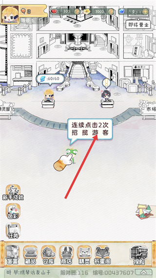 4、連續(xù)點(diǎn)擊2次招攬游客,吸引游客到來,為恢復(fù)色彩后的世界增添人氣,繼續(xù)推進(jìn)游戲發(fā)展。