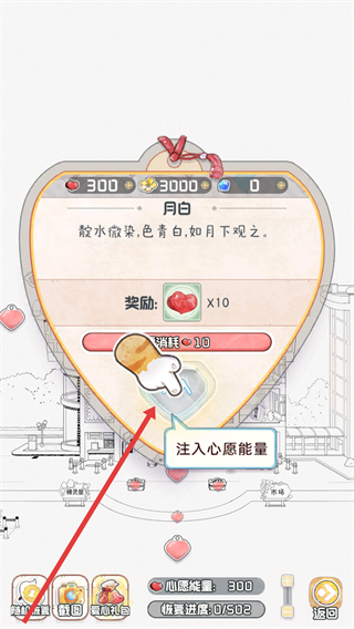 3、注入心愿能量,可獲得獎勵,不斷積累心愿能量,助力世界色彩的恢復(fù)和游戲進(jìn)程的推進(jìn)。