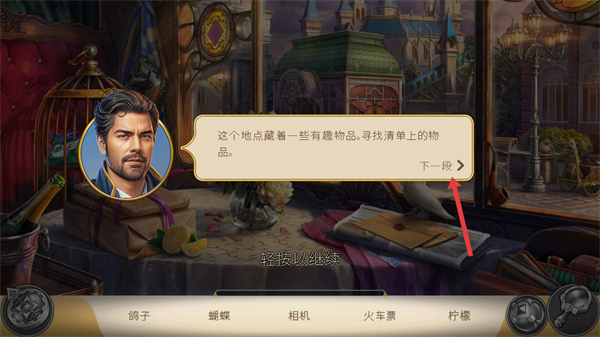 1、會(huì)提示這個(gè)地點(diǎn)藏著有趣物品,要尋找清單上的物品,點(diǎn)擊下一段,開啟尋物任務(wù),去發(fā)現(xiàn)各種隱藏的東西。