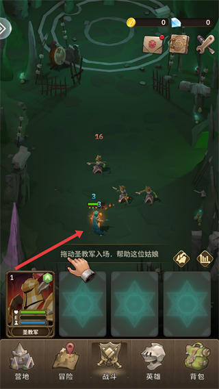 1、需拖動(dòng)救軍入場(chǎng),幫助姑娘,按照提示操作,讓救軍加入戰(zhàn)斗,開啟救援冒險(xiǎn)的第一步。