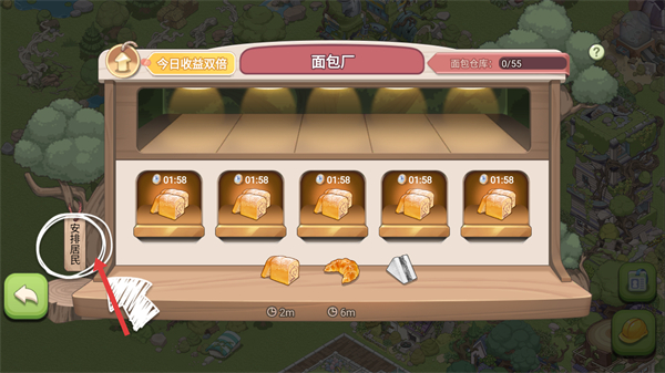 4、在面包廠可安排居民,生產(chǎn)面包等食品,還能享受今日收益雙倍的福利,通過(guò)生產(chǎn)獲取資源助力家園重建。