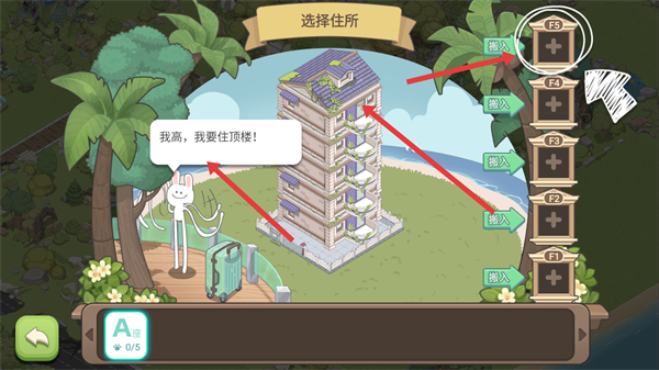 2、會(huì)有選擇住所的環(huán)節(jié),可選擇如頂樓等不同樓層入住,按照提示操作,為角色安排合適的居住場(chǎng)所。