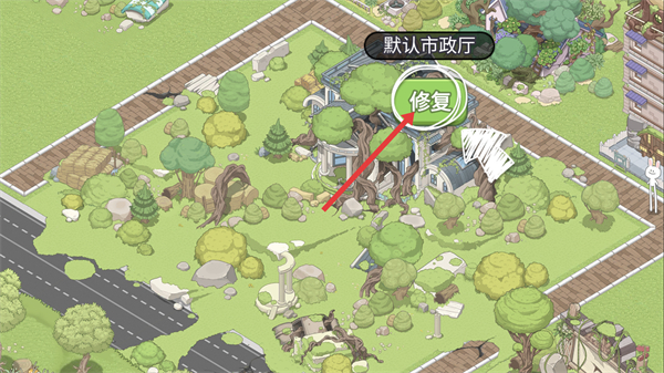 3、存在默認(rèn)市政廳等建筑,點(diǎn)擊修復(fù)按鈕可對(duì)其進(jìn)行修復(fù),不斷完善家園的核心建筑,推進(jìn)重建進(jìn)程。