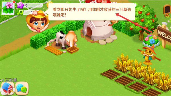 2、收割莊稼后可獲得如三葉草等物品,利用這些物品喂養(yǎng)農(nóng)場(chǎng)動(dòng)物,如奶牛,促進(jìn)動(dòng)物生產(chǎn)。