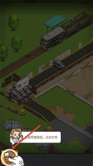 1、進(jìn)入初始界面,可點(diǎn)擊修建按鈕,開(kāi)啟工廠修建流程,逐步搭建汽車修理相關(guān)設(shè)施。