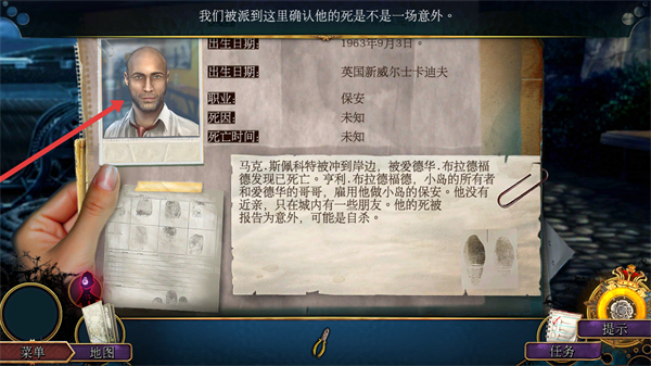 2、查看人物檔案,如保安的出生日期、職業(yè)、死因等信息,收集線索,確認(rèn)死亡是否為意外。
