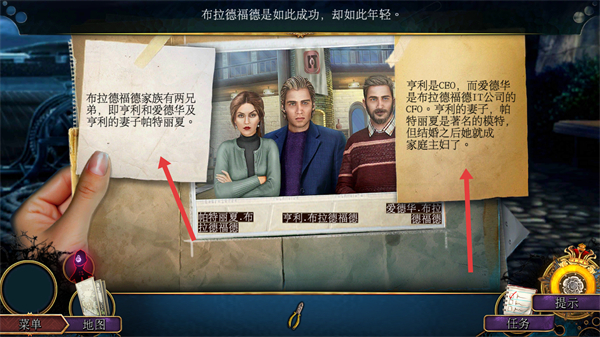 4、閱讀家族資料,了解如布拉德福德家族的成員信息,梳理人物關(guān)系,為解謎提供線索。
