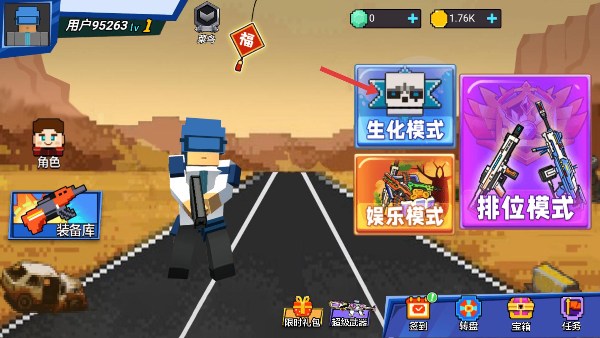 1、選擇【生化模式】,進(jìn)入對(duì)應(yīng)玩法場(chǎng)景,可體驗(yàn)與僵尸對(duì)抗的刺激戰(zhàn)斗,利用角色和裝備展開(kāi)冒險(xiǎn)。