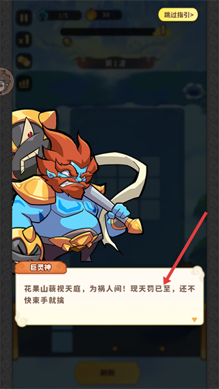 1、開局會出現(xiàn)劇情對話,了解巨靈神等角色的劇情后,開啟塔防戰(zhàn)斗,準(zhǔn)備抵御敵人進(jìn)攻。