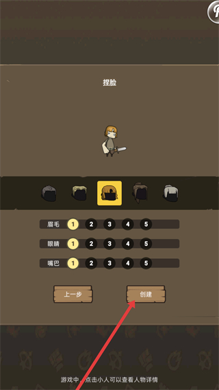 2、可進(jìn)行捏臉,調(diào)整眉毛、眼睛、嘴巴等部位,選擇發(fā)型,設(shè)置完成后點擊創(chuàng)建,生成自己的游戲角色。