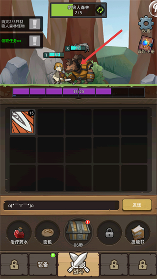 4、會遇到怪物,點擊戰(zhàn)斗按鈕與之戰(zhàn)斗,界面顯示戰(zhàn)斗進(jìn)度,通過戰(zhàn)斗獲取經(jīng)驗和物品,推進(jìn)冒險。