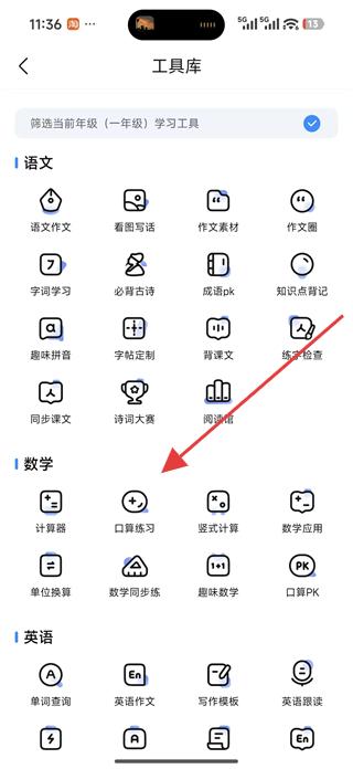 1、進(jìn)入工具庫頁面找到數(shù)學(xué)板塊的口算練習(xí)選項(xiàng)并點(diǎn)擊,進(jìn)入數(shù)學(xué)練習(xí)的口算練習(xí)界面。