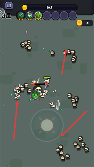 1、靈活操控角色:運(yùn)用手指劃屏或重力感應(yīng),靈活操控老奶奶移動(dòng),在躲避死神軍團(tuán)攻擊的同時(shí),精準(zhǔn)拾取技能球,為釋放技能戰(zhàn)斗做好準(zhǔn)備。