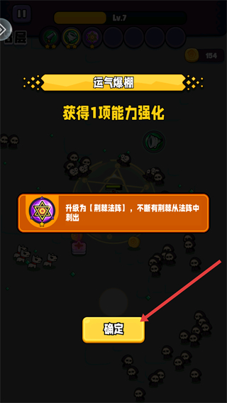 3、可獲得能力強(qiáng)化,如升級(jí)魔法陣技能,點(diǎn)擊確定領(lǐng)取,提升角色戰(zhàn)斗能力,助力后續(xù)地牢戰(zhàn)斗。