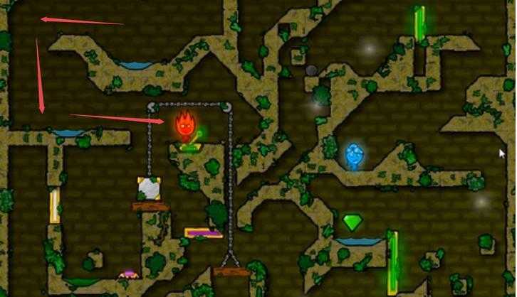 2、角色操控協(xié)作:操控火娃與冰娃,利用兩者特性,在雙人模式中相互配合,通過偵查陷阱、推動(dòng)石塊等方式前進(jìn)。