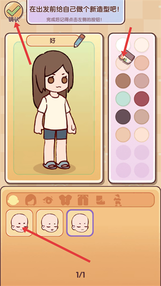 1、出發(fā)前可以給自己打造新造型,選擇不同的發(fā)型等,打造好后點擊確認,完成造型設置,讓角色更具個性。