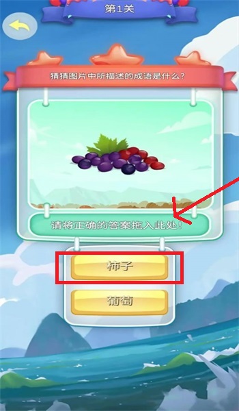 2、關卡中將正確答案拖入箭頭所指的方框中。