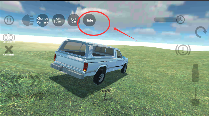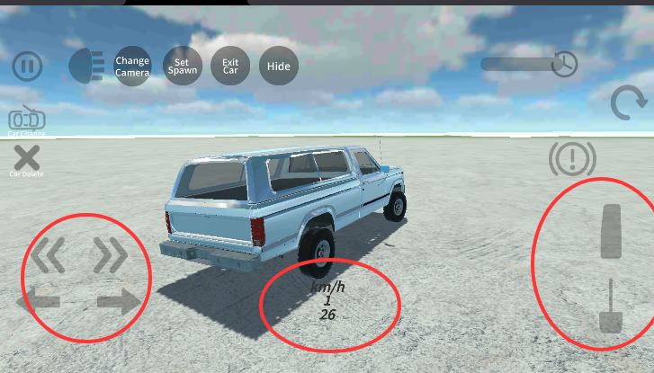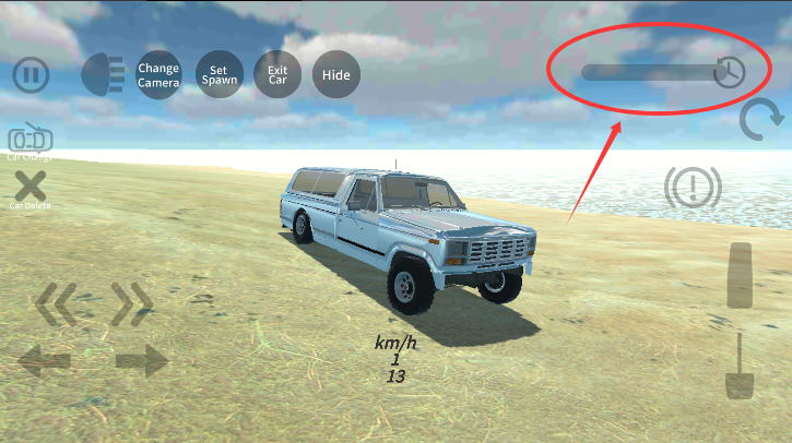 1、左下角是車燈鍵和車輛方向鍵,中間顯示時速,右邊是油門和后退鍵。