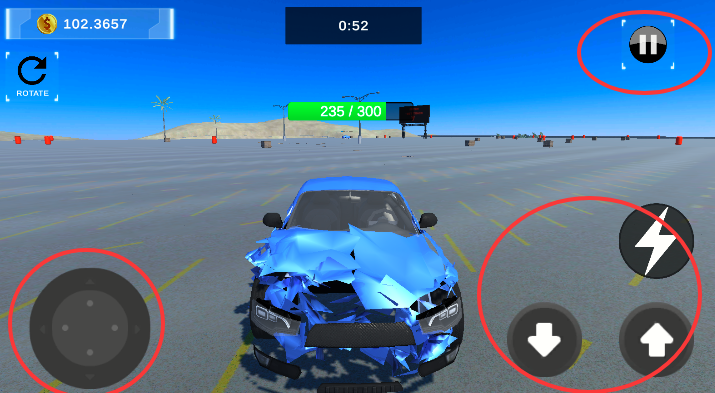 2、左下角可以控制車輛行駛的方向,右上角“暫停鍵”點(diǎn)擊可以暫停游戲,右下角是加速,往前行駛和往后行駛鍵。