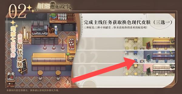 2、完成七日任務(wù)和主線任務(wù)獲取現(xiàn)代皮膚家具。