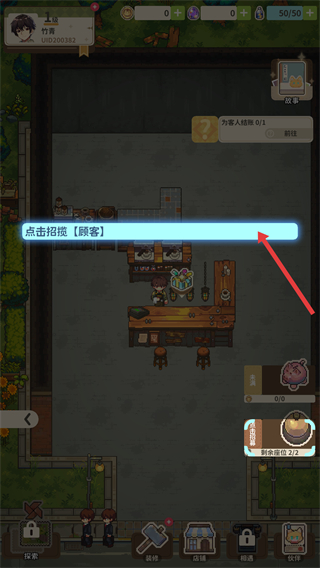 2、在咖啡屋中點擊招攬顧客,吸引顧客到店,為咖啡屋積累客源,逐步提升經(jīng)營規(guī)模。