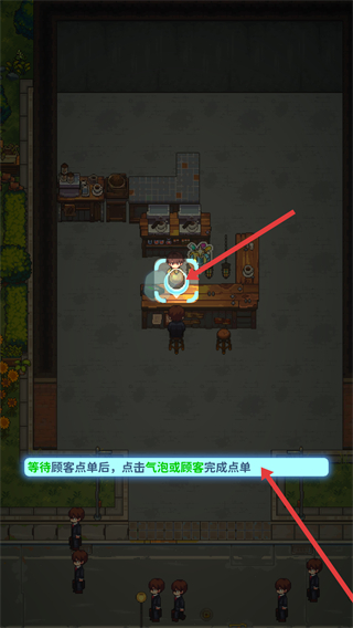 3、等待顧客點單后,點擊氣泡或顧客完成點單,為顧客提供咖啡等飲品,完成經(jīng)營服務(wù)。