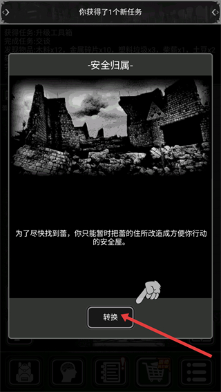 1、獲得新任務(wù)后,出現(xiàn)安歸歸屬界面,點(diǎn)擊轉(zhuǎn)換按鈕,可把蕾的住所改成方便行動(dòng)的安全屋,推進(jìn)任務(wù)進(jìn)度。