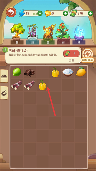3、進入五味瓶界面,能看到酸、甜、苦、辣、咸等對應的食材,可利用這些食材制作飲料,推動店鋪相關業(yè)務。