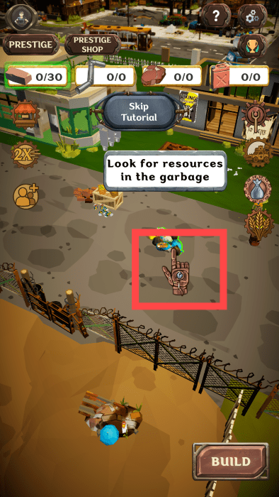 1、點擊下載安裝游戲進(jìn)入,首先去尋找資源收集,點擊廢品進(jìn)行收集,去獲得更多的資源。