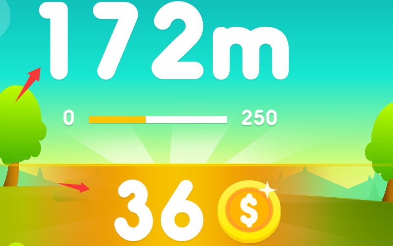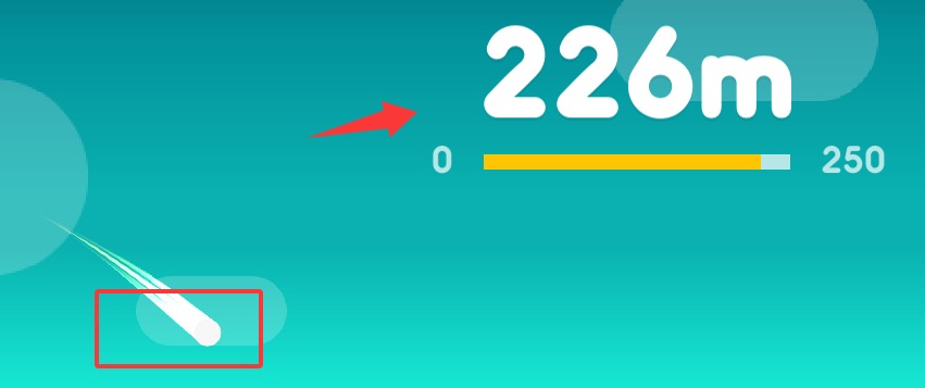 2、成功彈射后,屏幕上方實(shí)時(shí)顯示飛行距離,讓你掌握每次投射的具體表現(xiàn)。