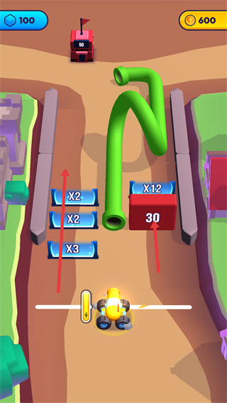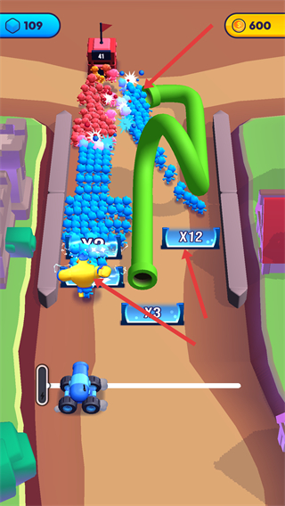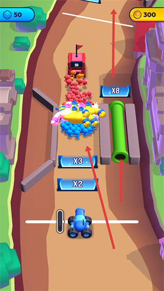 3、可選擇不同路徑推進(jìn),路徑上有不同倍增道具和障礙,選擇合適路徑快速積累小人數(shù)量。