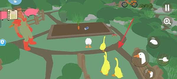 1、操控大鵝推牛棚門引牛跑出,待園丁趕牛入棚時,快速叼門關(guān)閉將其鎖住完成任務(wù)。