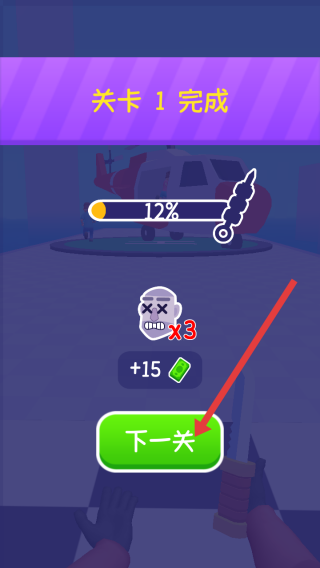 4、成功完成關(guān)卡1后,界面顯示關(guān)卡1完成,還有獲得的獎(jiǎng)勵(lì)提示,點(diǎn)擊下一關(guān)按鈕,繼續(xù)新的救援冒險(xiǎn)關(guān)卡。