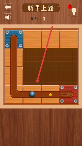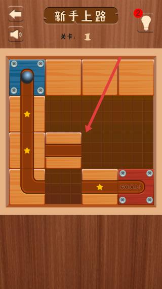 1、玩家需要點(diǎn)擊進(jìn)入新手上路關(guān)卡1,并且需要仔細(xì)觀察木板布局,以及小球初始位置。