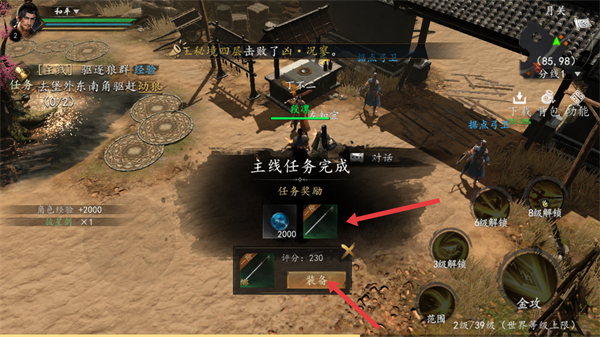2、完成主線任務可獲得經(jīng)驗、道具等獎勵,點擊裝備道具,提升角色戰(zhàn)力,推進劇情發(fā)展。