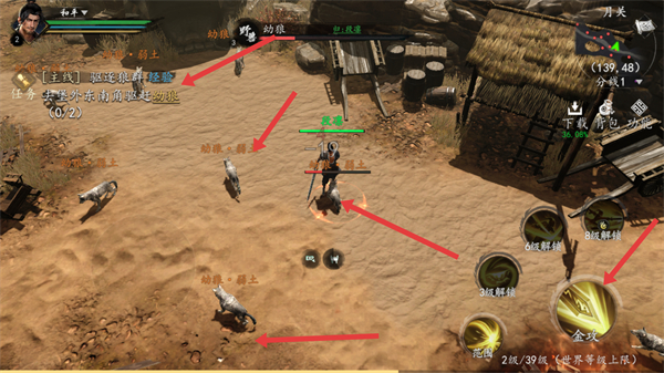 3、與怪物如幼狼戰(zhàn)斗,使用技能如金攻攻擊,消滅怪物獲取經(jīng)驗和資源,提升等級。