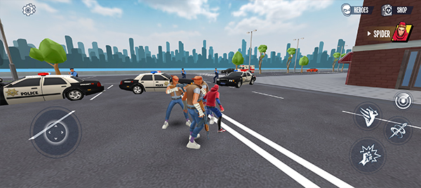 1、游戲的玩法很簡單,只需在有限的生命值內(nèi)擊敗游戲中的所有歹徒,左側(cè)控制角色的方向,而右側(cè)則是各種技能鍵。