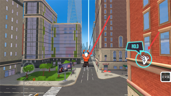 2、操控角色利用繩索在高樓間滑行,從一座建筑滑向另一座,體驗空中穿梭的跑酷樂趣。