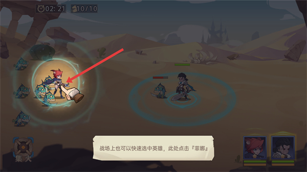 2、戰(zhàn)場上可快速選中英雄,比如點擊菲娜,方便對特定英雄進行操作,提升戰(zhàn)斗時的指揮效率。