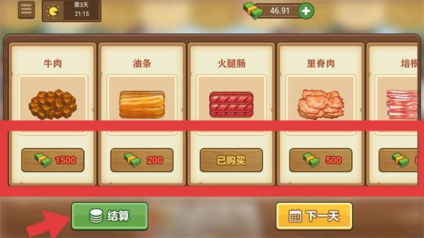 4、店鋪升級(jí)系統(tǒng):賺取的鈔票可用于擴(kuò)展店鋪空間、升級(jí)烹飪?cè)O(shè)備,提升服務(wù)效率與顧客容納量,實(shí)現(xiàn)攤位規(guī)模的持續(xù)擴(kuò)張。
