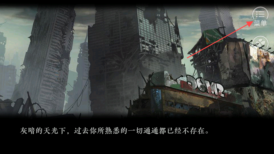 2、于場(chǎng)景界面,玩家按紅色箭頭所指,點(diǎn)擊菜單按鈕,切換界面,進(jìn)入主菜單操作頁(yè)。