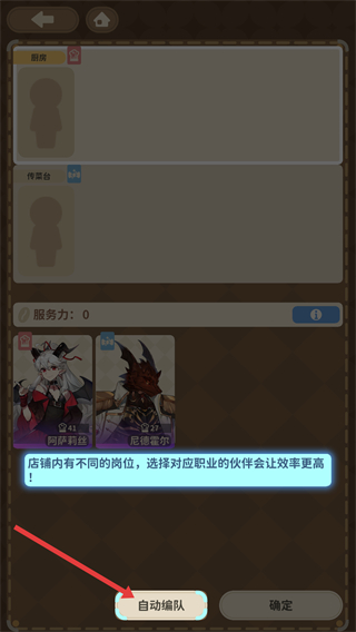 3、安排好崗位的伙伴可自動(dòng)服務(wù)客人,處于正確崗位的伙伴還能自動(dòng)釋放強(qiáng)力技能,幫助店鋪運(yùn)營(yíng)。