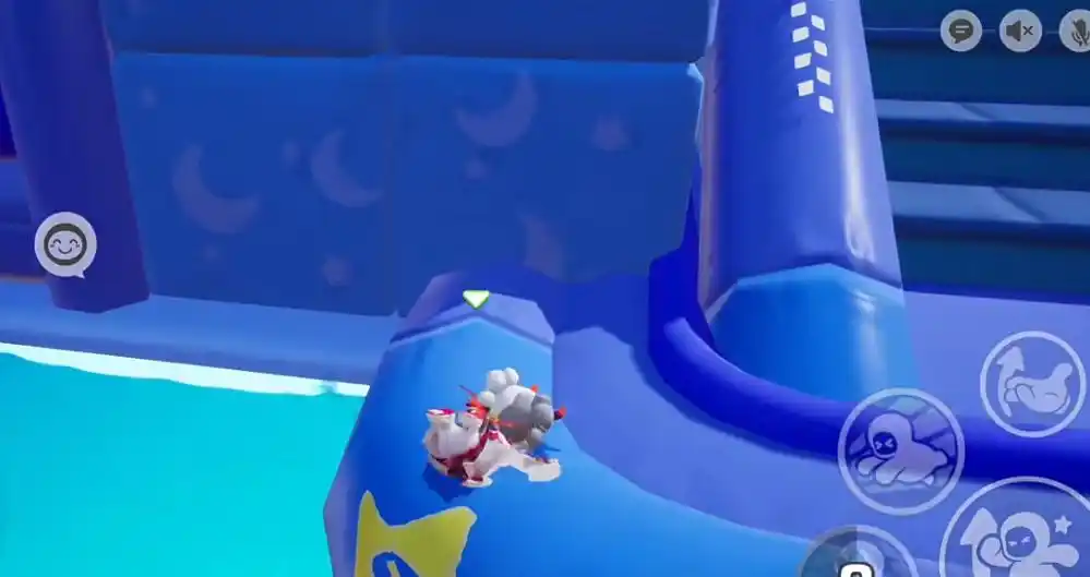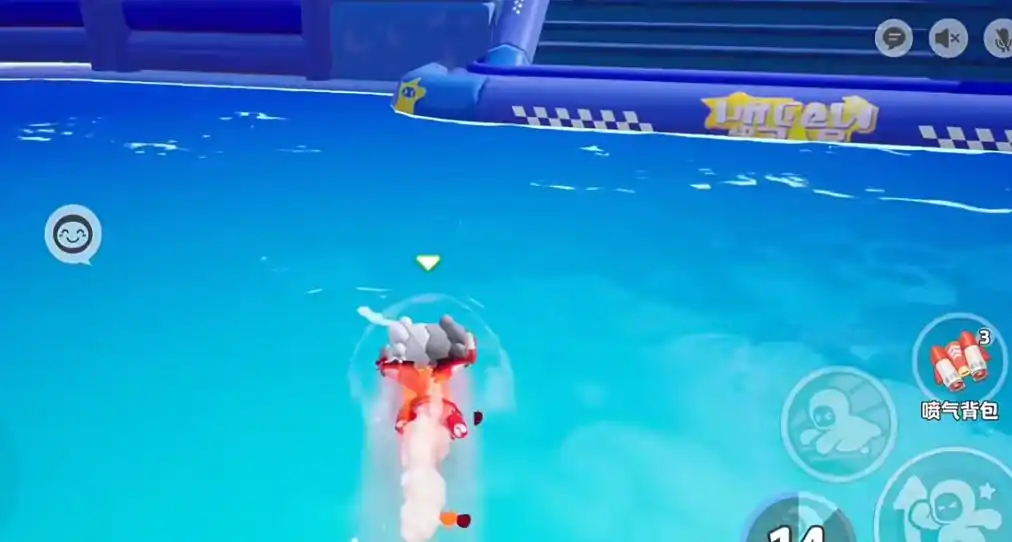 3、互動干擾,用表情互動擾亂對手,在滑梯水池銜接處卡點,借場景滑行加速穩(wěn)固無敵位置。