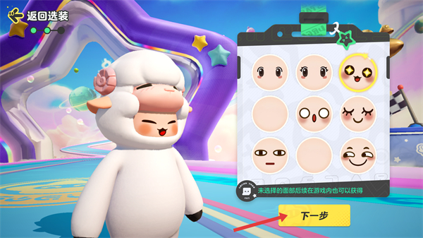 4、之后能為角色選擇面部表情,有多種可愛表情可選,選好后點擊下一步,繼續(xù)游戲進程。