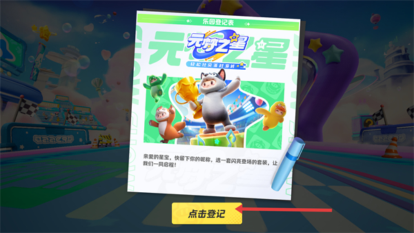 2、接著會看到樂園登記表,上面有可愛的角色形象,點擊登記,就能留下專屬的游玩印記。