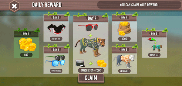 1、簽到領(lǐng)取福利:進(jìn)入游戲參與簽到活動(dòng),每天可領(lǐng)取不同裝扮,豐富老虎外觀。